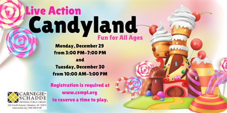 Join us for a larger-than-life edition of Candyland! Participants are encouraged to come in pairs or small groups and must register for a specific date and time to play at