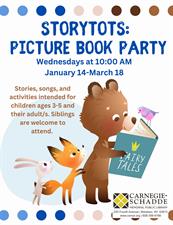 An active story time with stories, songs, and movement followed up with a sensory or process art activity. This program is intended for families with children ages 3-5.